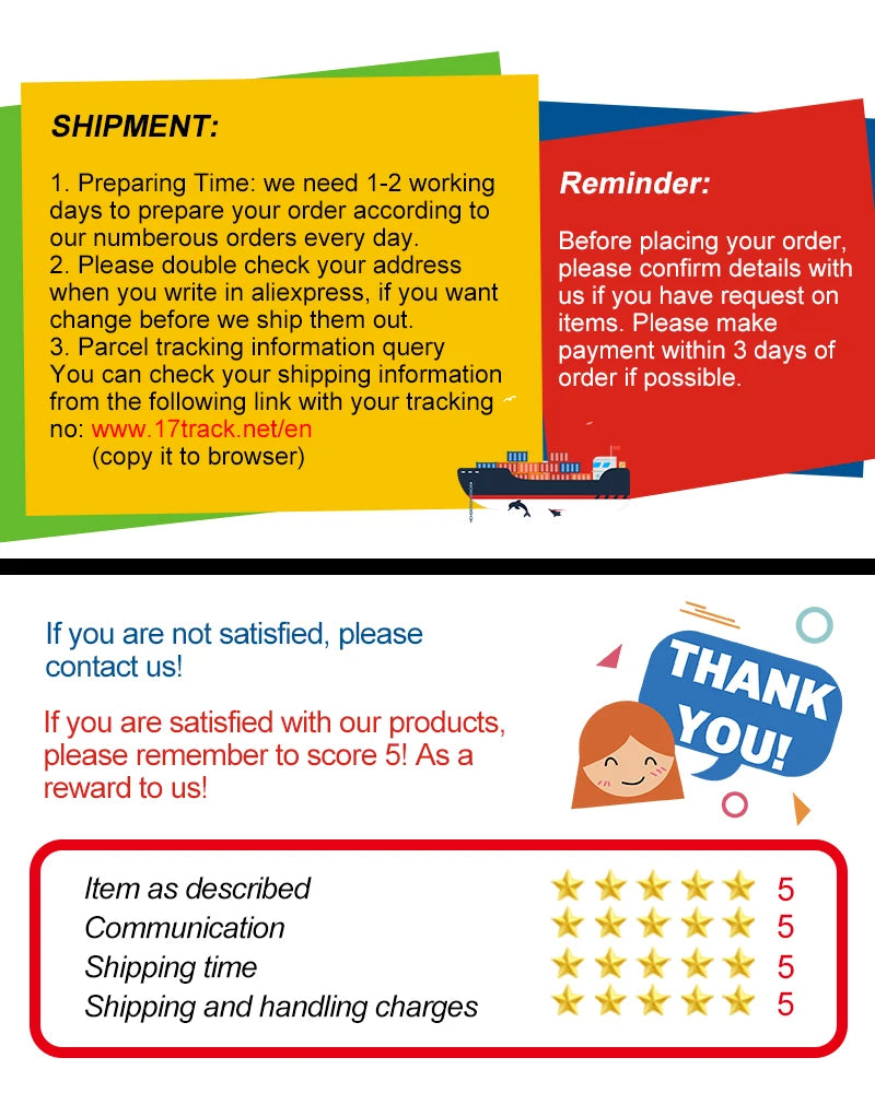 Tracking: You will receive a tracking number once your order is shipped.